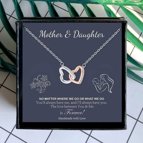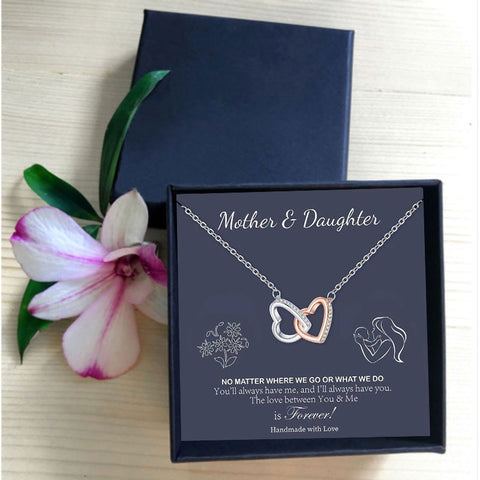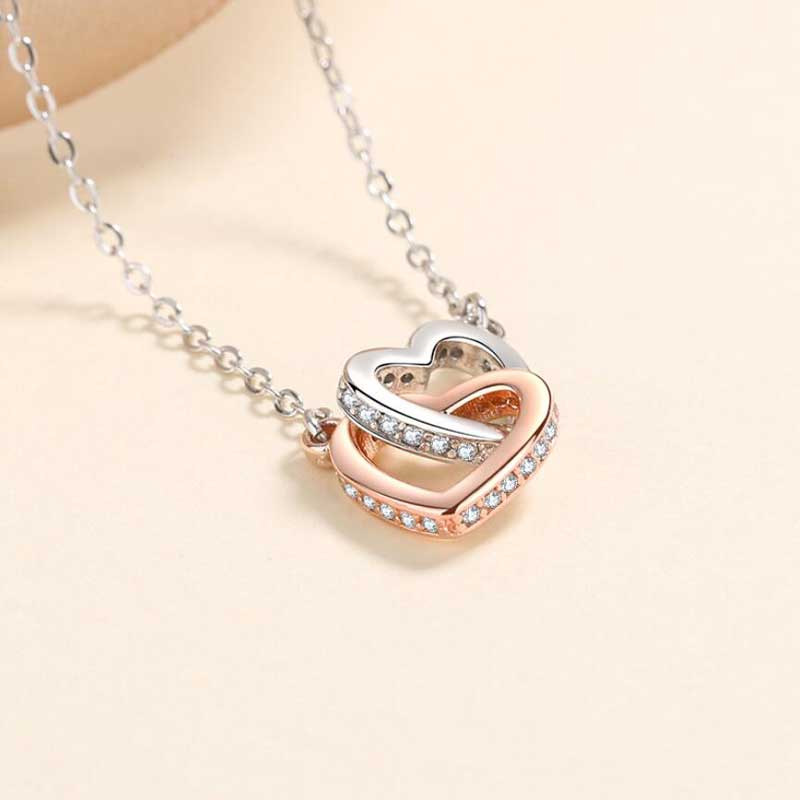 Double Heart Chain Necklace - Crystal Linked Necklace -  For Mother and Daughter