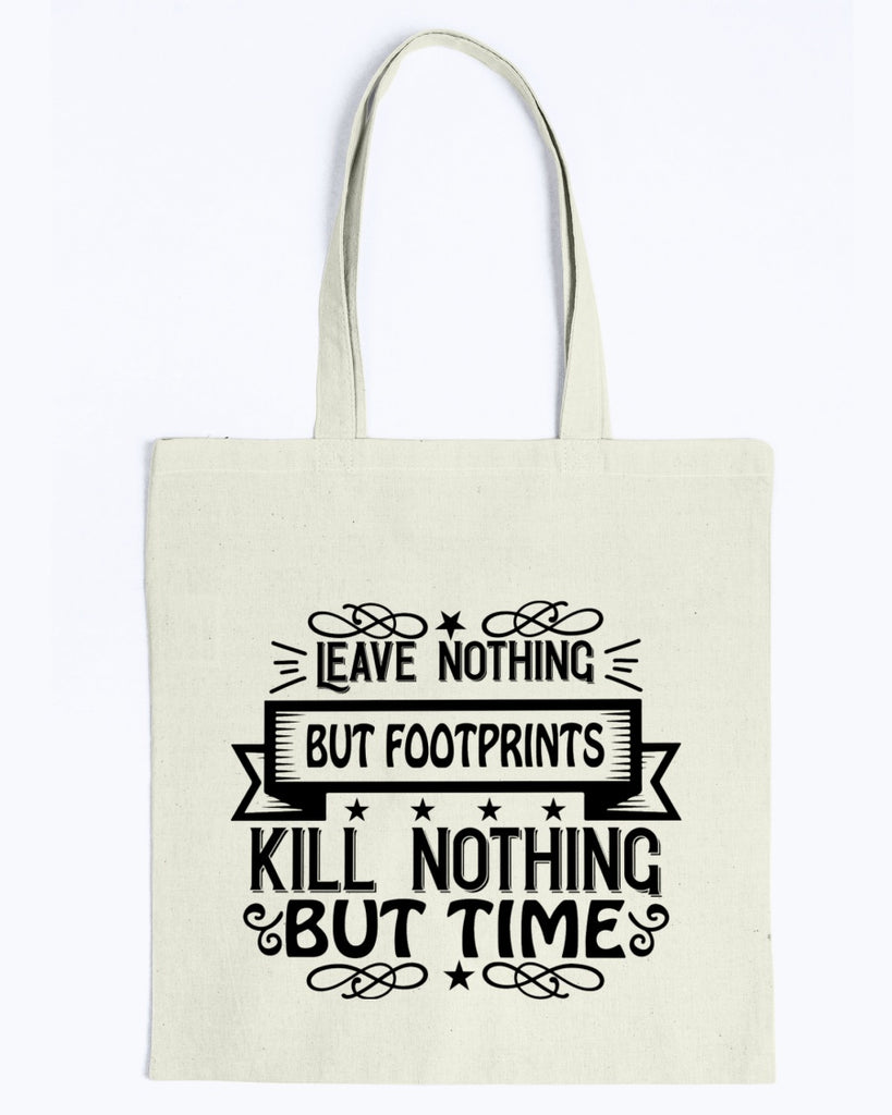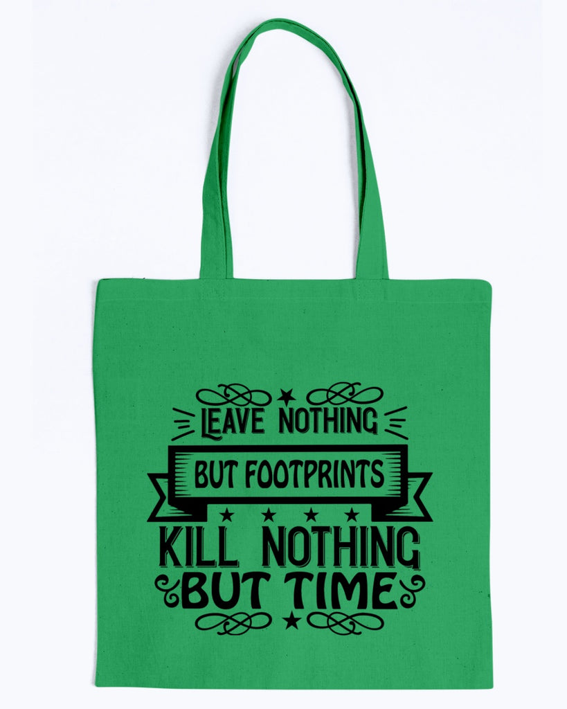 Get rid of that plastic bag and use tote bags!   Our new Leave Nothing But Footprints - Kill Nothing But Time TOTE BAG.