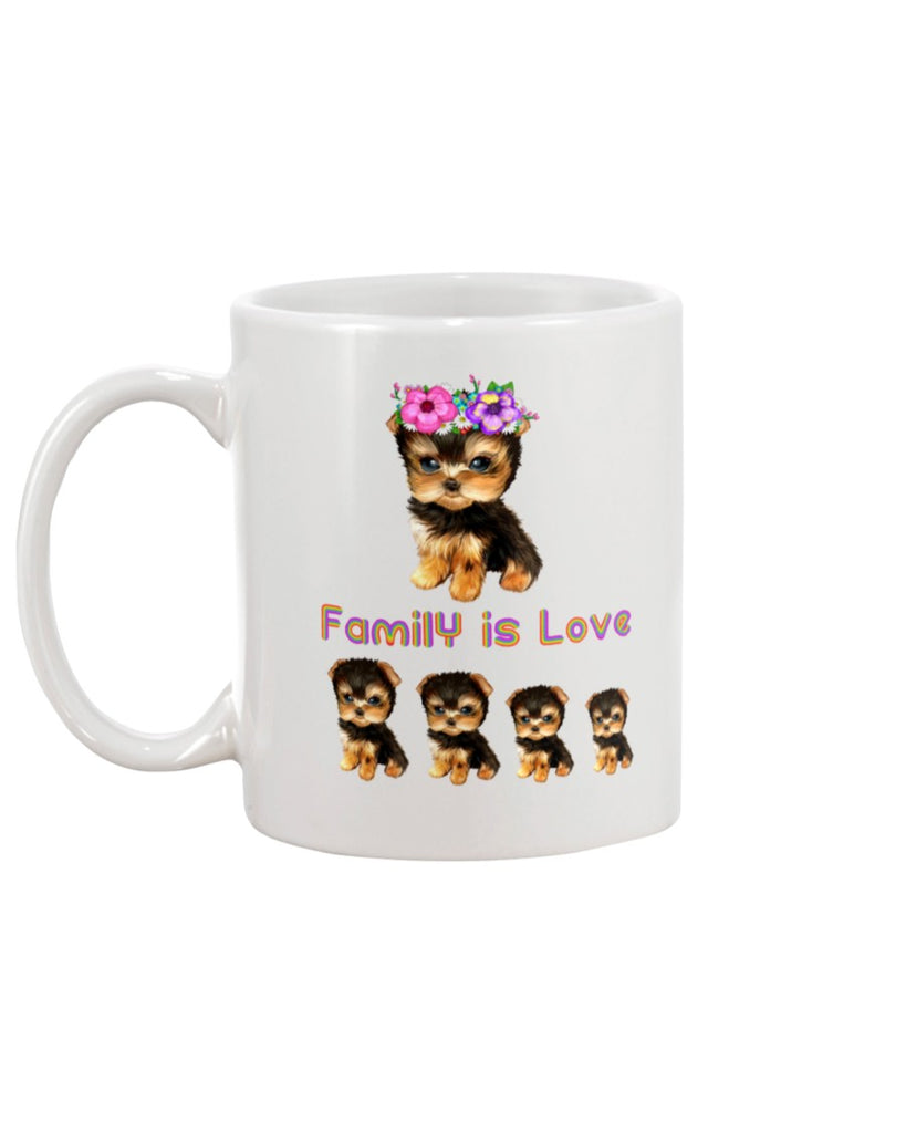 Our cute little puppy mug! Family is Love. Even for a puppy family. Comes in two sizes. Picture appears on both sides of the mug.