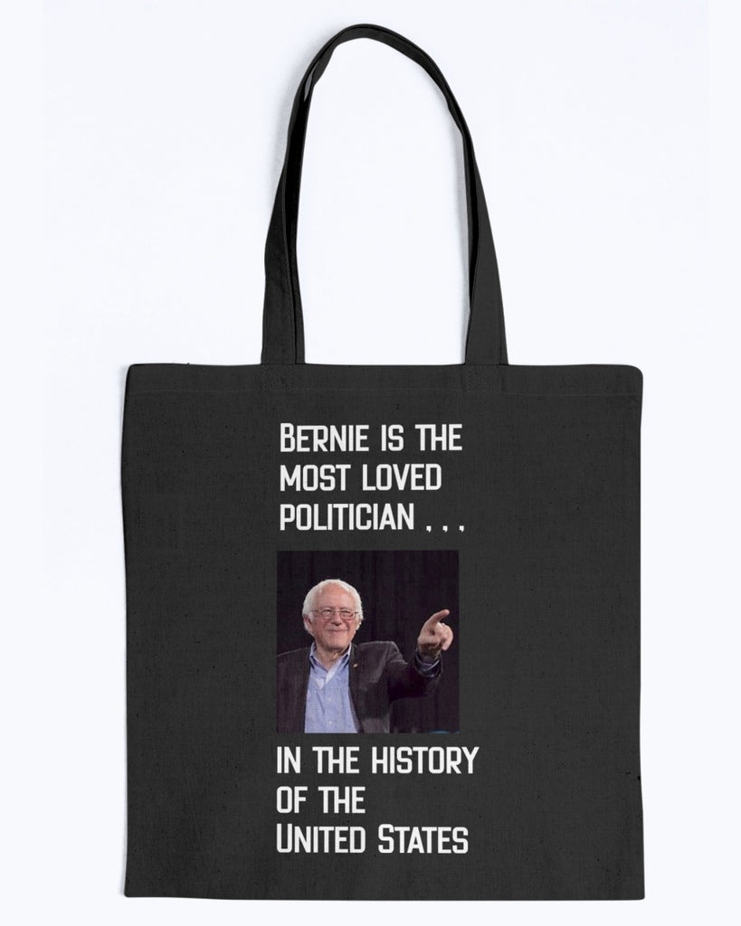 Our new BERNIE Tote Bag. Bernie is the most loved politician in the history of the United States. We agree! Do you? :)
