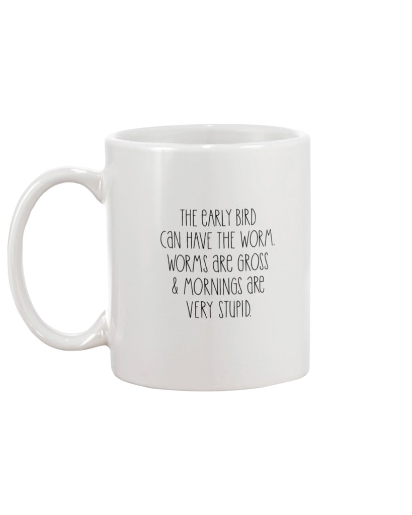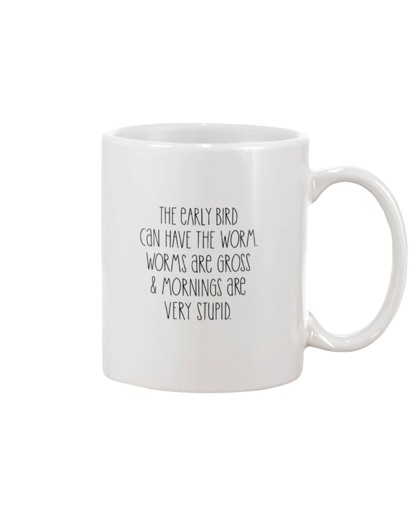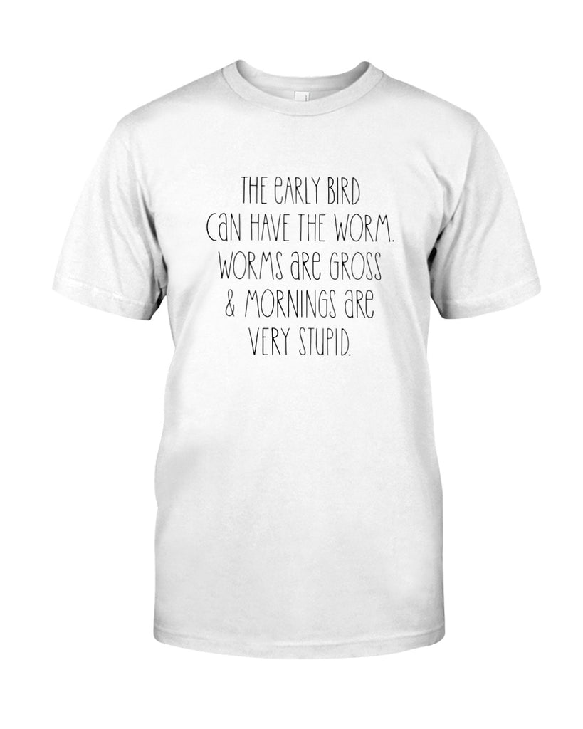 Are you an early bird .. or a night owl ? Sure to put a grin on your face either way! Our Early Bird Tee & Mug. Buy them both or just buy either! MUG will be shipped separate from the shirt.