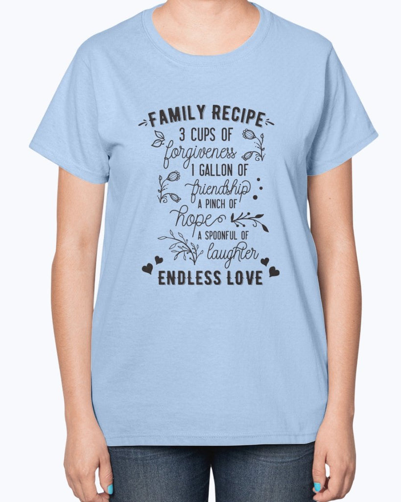 Our new Family Recipe Shirt. Family is everything! Love is precious!