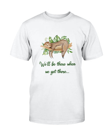 Our cute funny sloth tee - 'We'll be there when we get there ..'