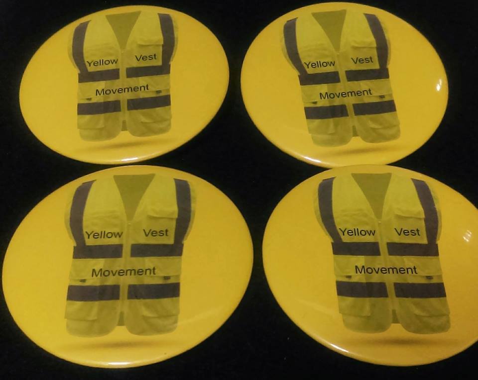 We are excited to offer our premium 'Yellow Vest Movement' Pins (Buttons)! Made in the USA!! 4 Per Pack 3 inch buttons. (If you want less than 4, please message us and we will accommodate you!)